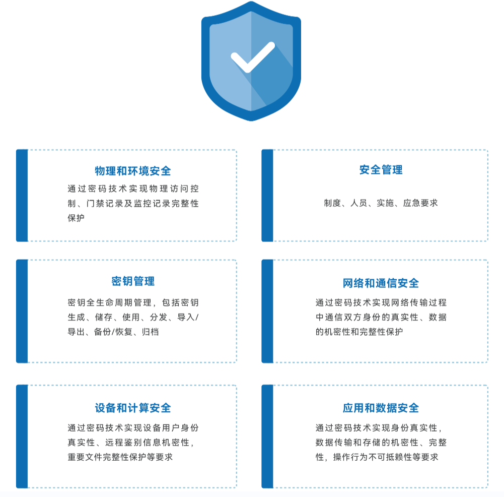 按照密碼法、網(wǎng)絡(luò)安全法、國家密碼管理局相關(guān)文件要求,參照GM/T 0054信息系統(tǒng)密碼應(yīng)用基本要求,愛迪科技提供基于密碼的可信身份認證及可信數(shù)據(jù)保暗等多層次、全方位的綜合性安全解決方案,滿足物理和環(huán)境安全、安全管理、 密鑰管理、網(wǎng)絡(luò)和通信安全、設(shè)備和計算安全、應(yīng)用和數(shù)據(jù)安全等應(yīng)用需求。